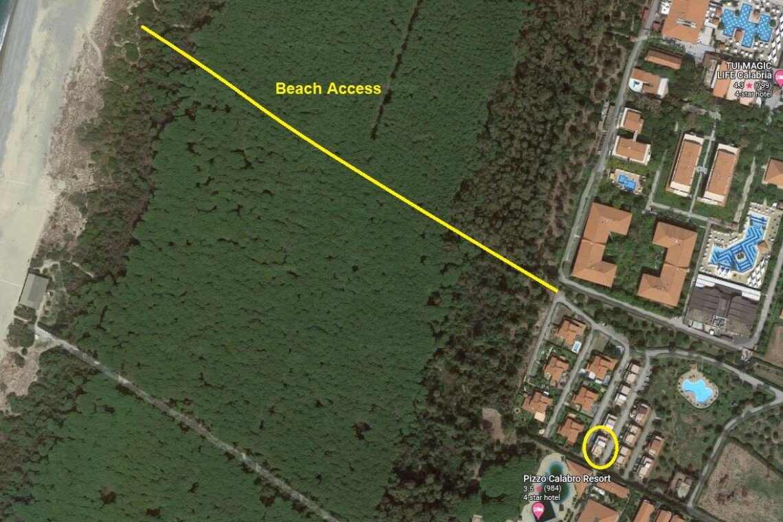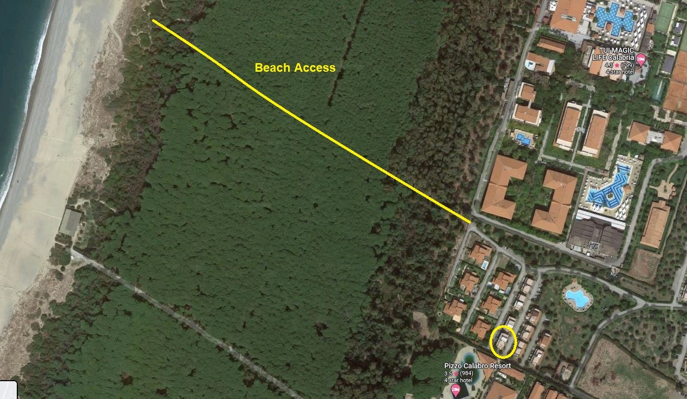 Recently the Times voted the beach at Tropea (about 30 minutes from the apartment) as the best beach in Europe!! However, this is just one example of the fantastic beaches in Calabria. Only 250m from the apartment through a beautiful pine and eucalyptus forest is a wonderful sandy beach complete with 200 sun loungers and 100 beach umbrellas for your exclusive use