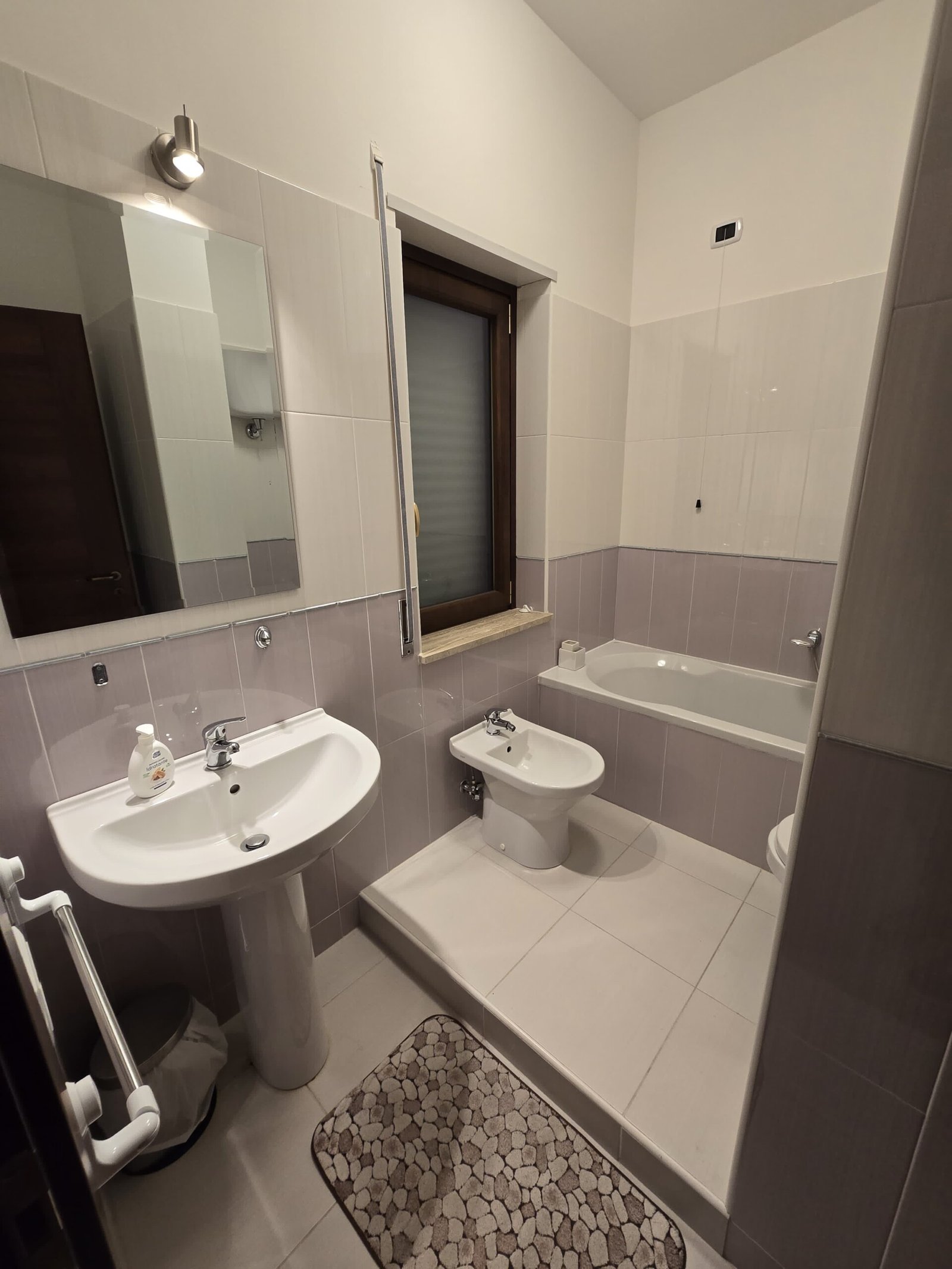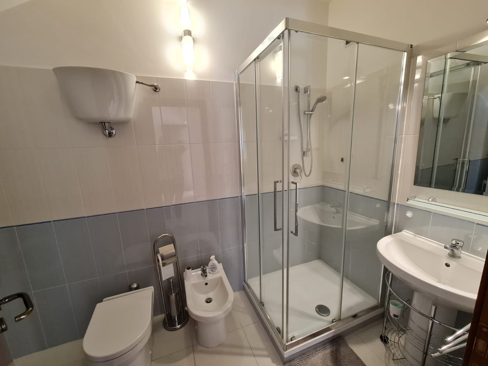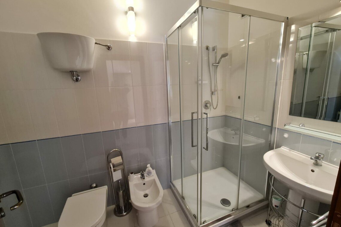 •    Family bathroom with washing machine, shower, sink, bidet, toilet