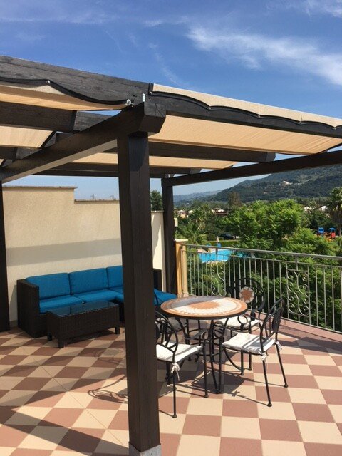The Calabrian winter is cool and there is moderate rainfall which only means that in Summer, when it is simply Divine, the area still remains beautifully green and rich with flowers. Summer temperatures regularly hit the 30s and the evening sun is simply fantastic up on our roof terrace.