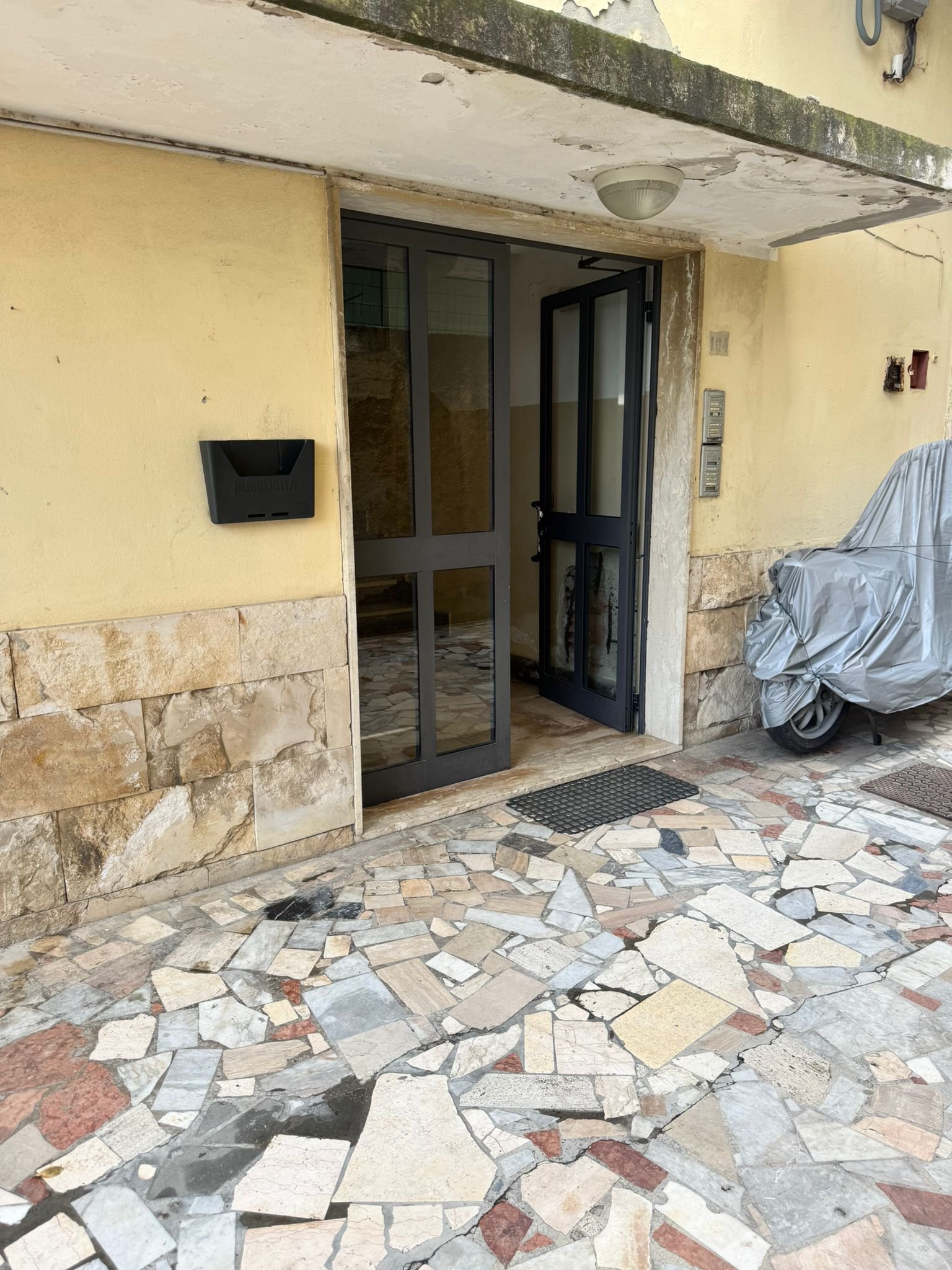 This apartment is located in a building of 4 floors in the area of Piedigrotta Pizzo. The building itself has been part renovation i.e. certain owners have renovated their apartments internally and also externally, while other owners have decided not to proceed.
